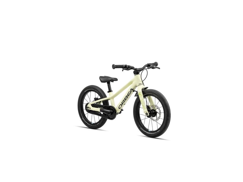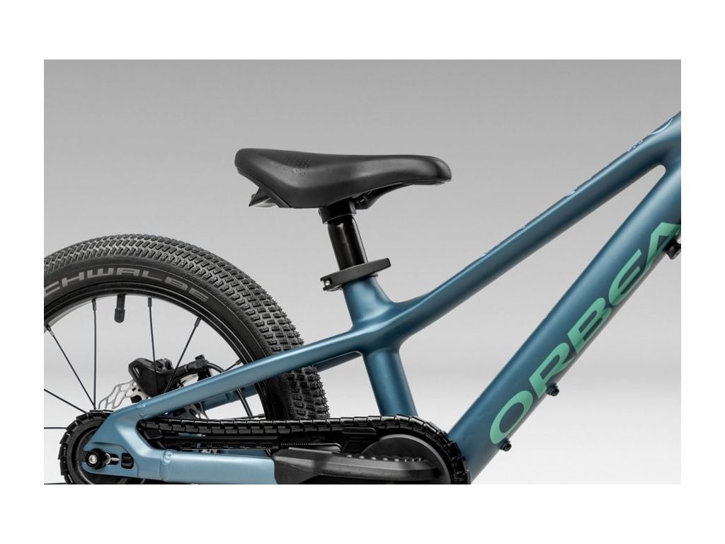 Konceptem "Big Wheel" vychází Orbea z jednoduché fyziky. 16palcová kola s rozměrem pneumatiky 2,00" se v terénu chovají podobně jako 29palcová kola na dospělých kolech. Vyšší moment setrvačnosti znamená stabilnější jízdu a předvídatelnější reakce na nerovnostech. Schwalbe Billy Bonkers Performance jsou přitom pláště, které skutečně drží na mokrém chodníku i na první šotolině.