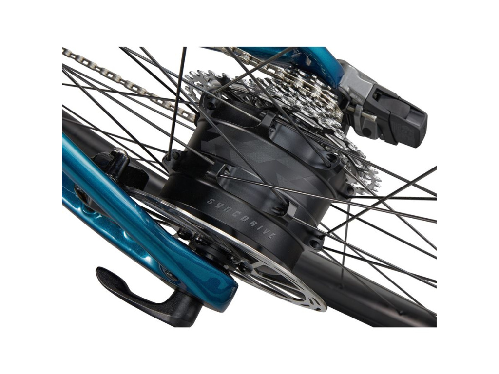 Motor SyncDrive Move Plus je zabudován přímo do zadního náboje a váží pouhých 1,7 kg. Dodává točivý moment odpovídající 75 Nm středového motoru, přičemž je výrazně lehčí a tišší. Systém je vyladěn pro vyšší kadence typické pro silniční jízdu — podpora je plynulá a při jízdě bez šlapání není cítit žádný mechanický odpor. To oceníš zejména ve chvílích, kdy asistenci nepotřebuješ a chceš jet čistě na vlastní sílu.
