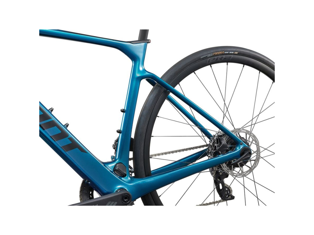 Rám z materiálu Advanced Composite a vidlice Advanced SL Composite tvoří základ, na který jsou navázány komponenty přímo ovlivňující komfort. Sedlovka a řídítka Giant D-Fuse s karbonovou sedlovkou absorbují vibrace z povrchu vozovky, takže i delší výjezdy jsou bez zbytečné únavy. Zapletená kola Giant P-R2 s bezdušovými plášti Schwalbe G-One Allround 700x35 pokrývají jak hladký asfalt, tak zpevněné cesty a lehké terénní úseky.