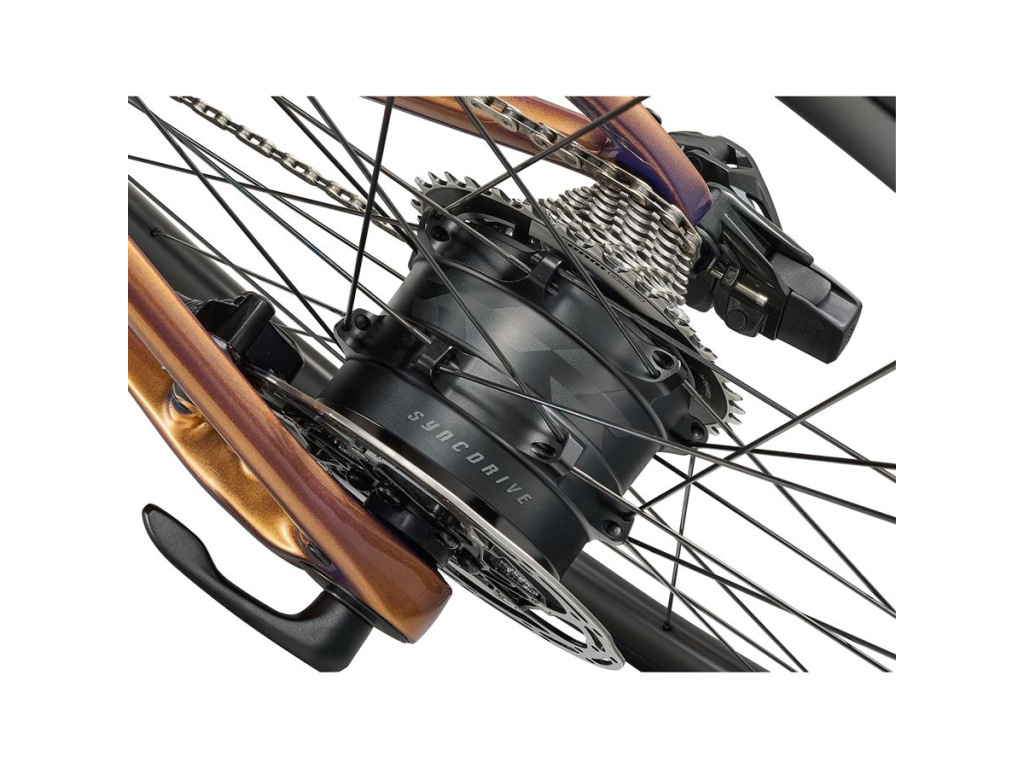 Motor SyncDrive Move Plus je zabudován přímo do zadního náboje a váží pouhých 1,7 kg. Dodává točivý moment odpovídající 75 Nm středového motoru, přičemž je výrazně lehčí a tišší. Systém je vyladěn pro vyšší kadence typické pro silniční jízdu — podpora je plynulá a při jízdě bez šlapání není cítit žádný mechanický odpor. To oceníš zejména ve chvílích, kdy asistenci nepotřebuješ a chceš jet čistě na vlastní sílu.