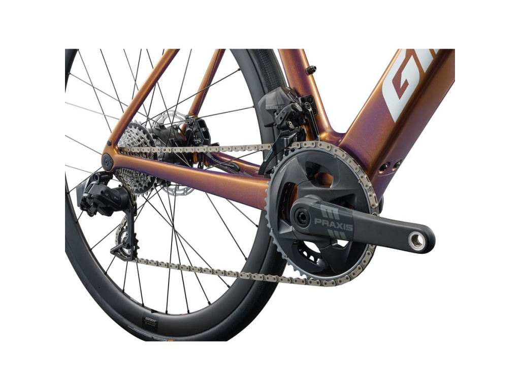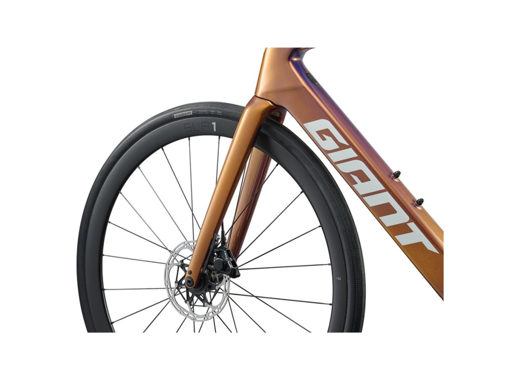 Rám z materiálu Advanced Composite a vidlice Advanced SL Composite tvoří základ, na který jsou navázány komponenty přímo ovlivňující komfort. Sedlovka a řídítka Giant D-Fuse s karbonovou sedlovkou absorbují vibrace z povrchu vozovky, takže i delší výjezdy jsou bez zbytečné únavy. Zapletená kola Giant P-R2 s bezdušovými plášti Schwalbe G-One Allround 700x35 pokrývají jak hladký asfalt, tak zpevněné cesty a lehké terénní úseky.