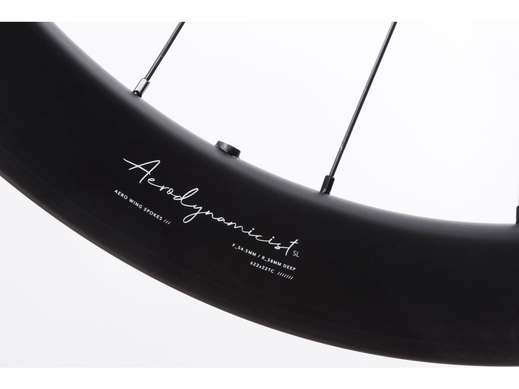 Přední kolo s 54,5mm profilem a 31,7mm vnější šířkou řeší proudění vzduchu efektivněji než konkurence. Zadní kolo s 58mm profilem a 30mm šířkou minimalizuje turbulence v oblasti, kde hmotnost nerozhoduje o řiditelnosti. Každý ráfek má specifický profil optimalizovaný pro svou pozici v soupravě. Vnitřní šířka 22 mm s hákovou patkou umožňuje bezpečné použití plášťů od 25 do 50 mm včetně tubeless i standardních drátěnek.