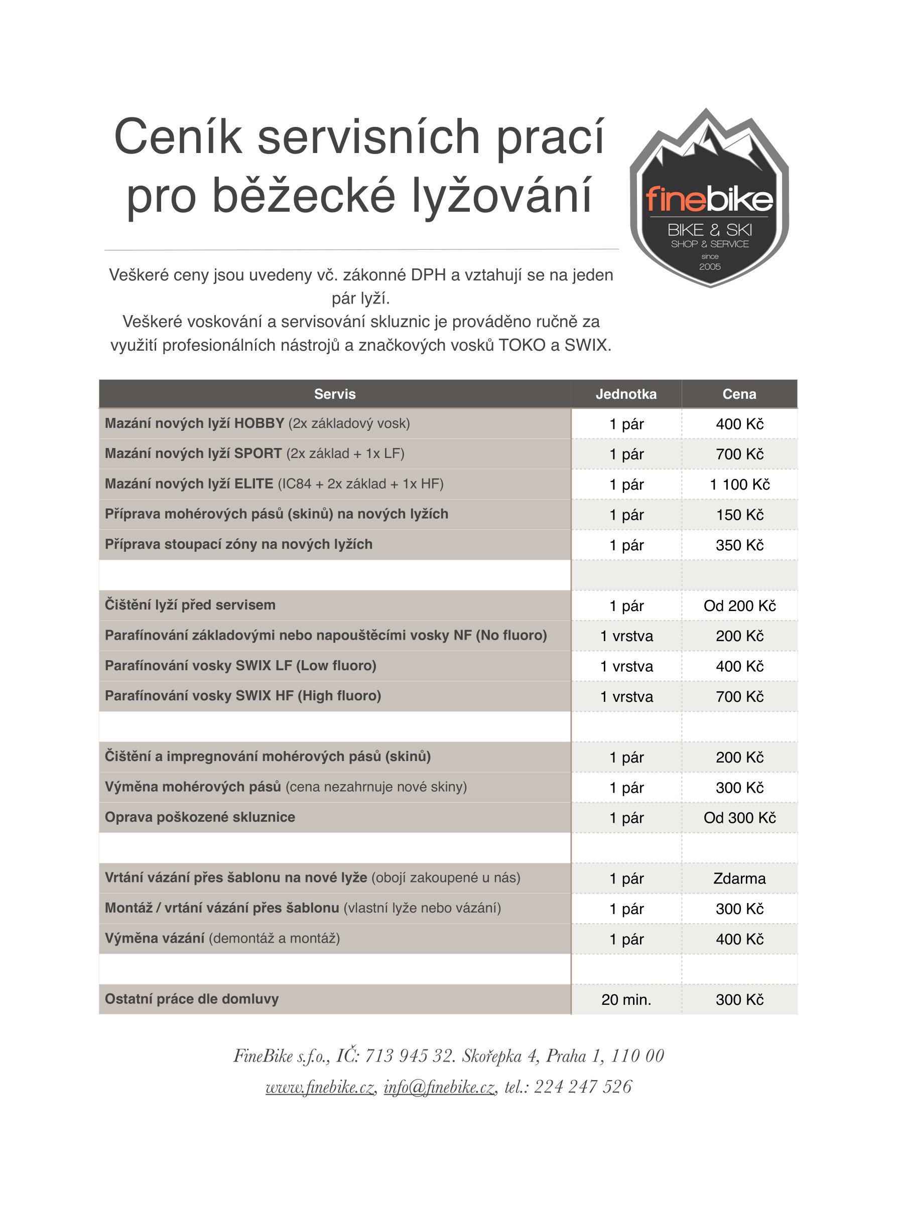 - Výkonnostní servis - čištění, ochrana a vyživení skluznice vč. předvoskové preparace + mazání vysoko fluorovými vosky